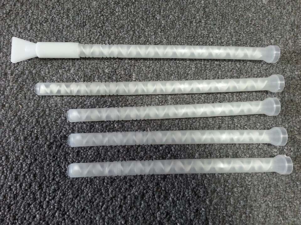 混合管是一種應用在多流體攪拌的新科技產(chǎn)品,由一連串的上下左右旋葉片,依序相互垂直排列在套管內(nèi)組合而成。它無須借由外力驅(qū)動;僅利用流體本身通過混合器時,進行連續(xù)的切割與重合,將兩種以上的材料轉(zhuǎn)化為均勻的混合液。